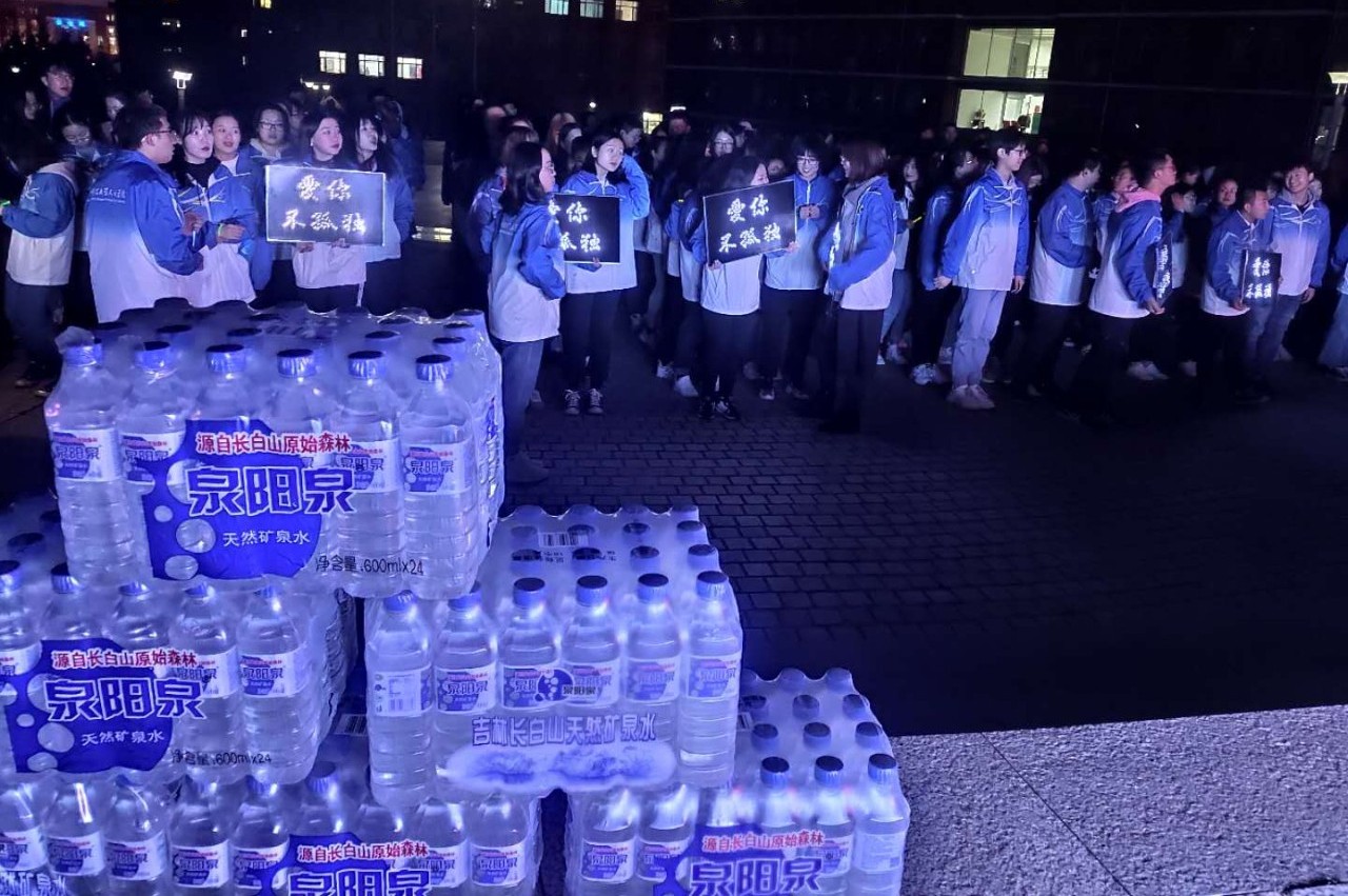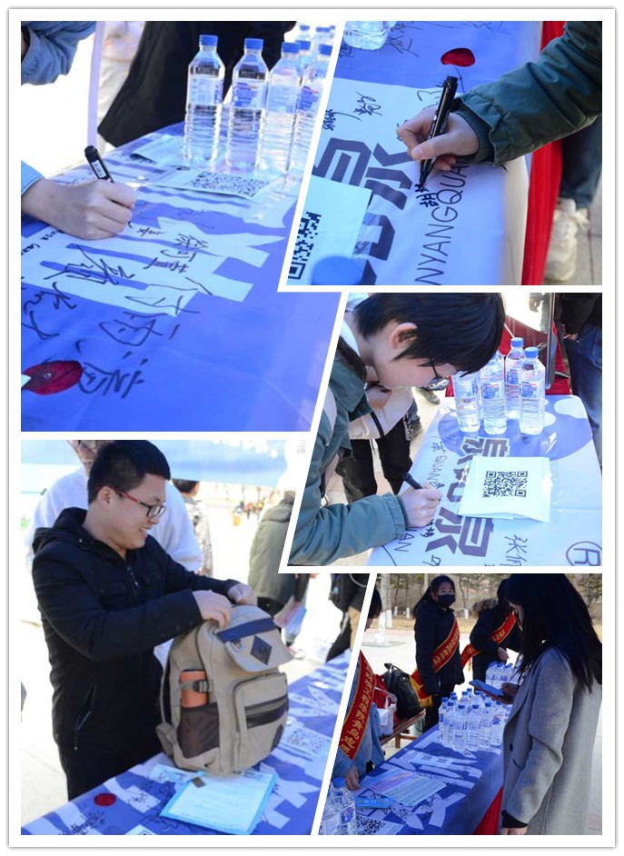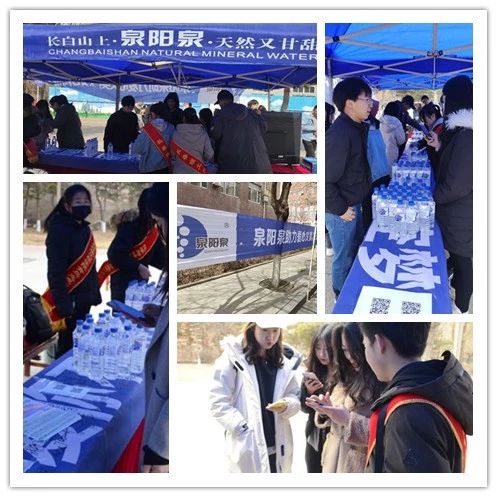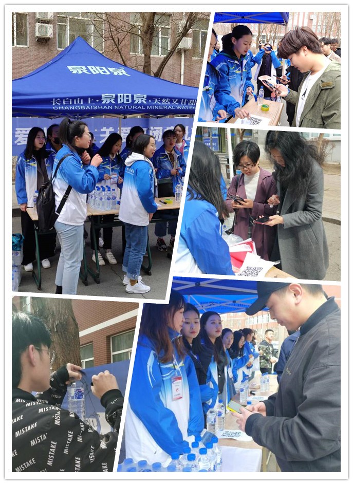 四月的長(zhǎng)春雖已步入了春天,但天氣依舊寒冷,盡管志愿者們凍得瑟瑟發(fā)抖,但每個(gè)成員都積極地參加到活動(dòng)中,將源自長(zhǎng)白山的泉陽泉天然礦泉水送至每個(gè)同學(xué)手中。
